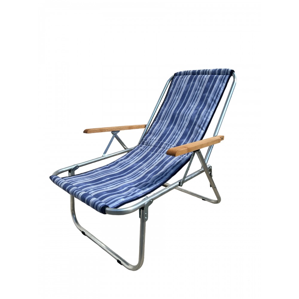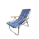 Stelaż leżaka jest aluminiowy, wykonany z rury fi 20 mm o grubości ścianki 1,00mm, podłokietniki z twardego drewna bukowego zabezpieczone impregnatem przeciw wchłanianiu wilgoci.